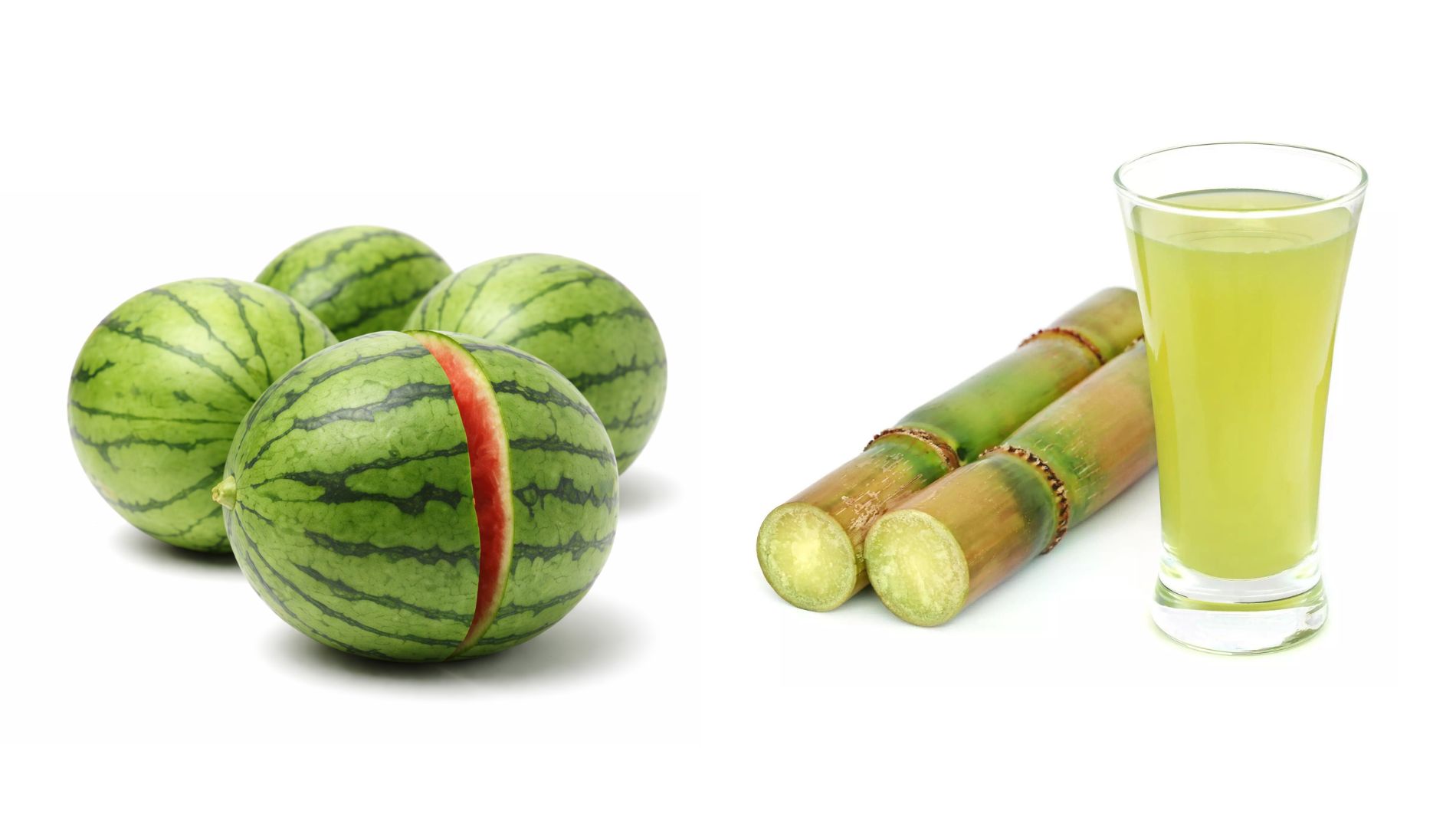 ഹോ എന്തൊരു ചൂട് അല്ലേ? എത്ര വെള്ളം കുടിച്ചിട്ടും ദാഹം തീരുന്നില്ല. അപ്പോഴാണ് അകവും പുറവും ഒന്നുപോലെ തണുപ്പിക്കാനുള്ള മാർഗങ്ങൾ അന്വേഷിക്കുന്നത്. അതിന്റെ മുമ്പന്തിയിലുണ്ട് തണ്ണിമത്തനും കരിമ്പ് ജ്യൂസും..രണ്ടും നല്ലതാണെങ്കിലും ഇതിലേതായിരിക്കും നല്ലത് എന്നൊരു ചിന്ത എപ്പോഴെങ്കിലും മനസ്സിൽ കടന്നുകൂടിയിട്ടില്ലേ? തണ്ണിമത്തനിൽ ഏകദേശം 90-92% വെള്ളം അടങ്ങിയിട്ടുണ്ട്. അതിനാൽ ഇത് വളരെ മികച്ച രീതിയിൽ നിർജലീകരണം തടയുന്നു. ശരീരത്തിലെ ചൂട് കുറയ്ക്കാൻ സഹായിക്കുന്നവിധത്തിലുള്ള കൂളിങ് നല്കാനും കഴിവുണ്ട്. കുറഞ്ഞ പഞ്ചസാരയും കലോറിയും ഉള്ളതിനാൽ ആവശ്യത്തിന് കുടിക്കാം.വിറ്റാമിൻ അ, ഇ, ഹ്യരീുലില പോലുള്ള ആന്റി ഓക്സിഡന്റുകളും അടങ്ങിയിട്ടുണ്ട്. ശരീരം തണുപ്പിക്കാനും ദാഹം അകറ്റാനും ഏറെ നല്ലതാണ്.തണ്ണിമത്തൻ പോലെതന്നെയാണ് കരിമ്പ് ജ്യൂസും.